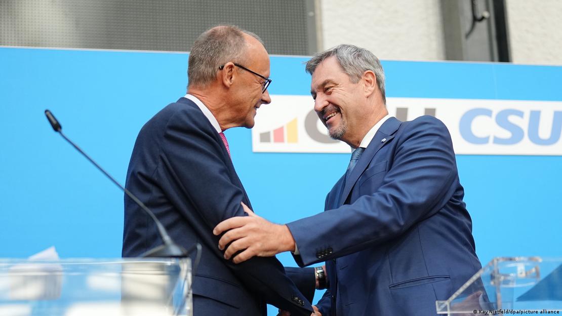 Χαμόγελα Μερτς και Ζέντερ τον περασμένο Σεπτέμβριο στο ΜόναχοΜία ακόμη σημαντική προϋπόθεση για να κερδίσει εκλογές ο Φρίντριχ Μερτς είναι να παραμείνει αρραγές το μέτωπο της κεντροδεξιάς αντιπολίτευσης μέχρι την ημέρα της κάλπης. Στις εκλογές του 2021 η υποψηφιότητα του Άρμιν Λάσετ για την καγκελαρία είχε υπονομευθεί εκ των έσω, καθώς ο επικεφαλής του «αδελφού κόμματος» των Βαυαρών Χριστιανοκοινωνιστών (CSU), Μάρκους Ζέντερ, επέμενε να λάβει εκείνος το «χρίσμα». Αυτή τη φορά προτίμησε τη συναίνεση και εμφανίστηκε από κοινού με τον Φρίντριχ Μερτς, στα μέσα Σεπτεμβρίου, για να δηλώσει χωρίς περιστροφές: «Το θέμα της υποψηφιότητας έληξε. Υποψήφιος θα είναι ο Φρίντριχ Μερτς. Εγώ είμαι εντάξει με αυτή την απόφαση και την στηρίζω ξεκάθαρα».