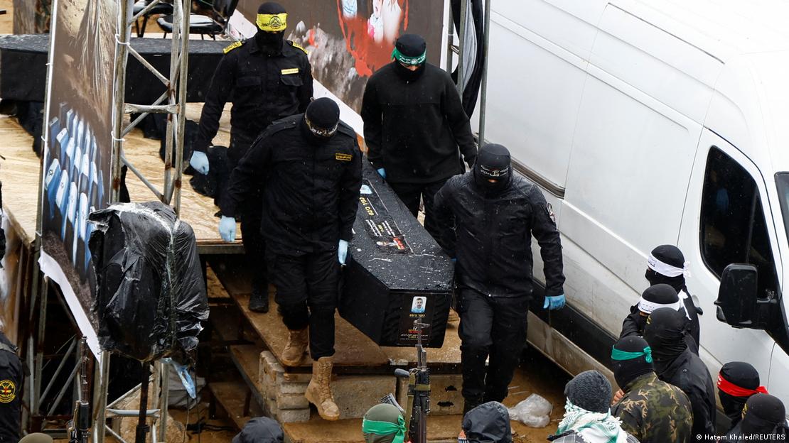 Σε ιδιαίτερα φορτισμένο, πένθιμο κλίμα, η ισραηλινή κοινή γνώμη παρακολούθησε λεπτό προς λεπτό σε απευθείας τηλεοπτική σύνδεση την διαδικασία παράδοσης των σορών της Σίρι Μπίμπας και των δύο της παιδιών, του Αριέλ και του Κφιρ, που μαζί με τον ηλικιωμένο Οντέντ Λίφσιτς απήχθησαν από την Χαμάς το πρωί της 7ης Οκτωβρίου 2023. Η παλαιστινιακή οργάνωση επέλεξε να διοργανώσει ακόμα μία φορά δημόσια τελετή, κατά την οποία στελέχη της με καλυμμένα πρόσωπα τοποθέτησαν τα τέσσερα φέρετρα των νεκρών ομήρων.