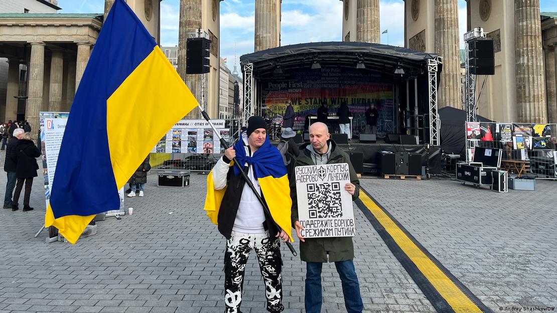 Στιγμιότυπο από συγκέντρωση υπέρ της Ουκρανίας, στο Βερολίνο