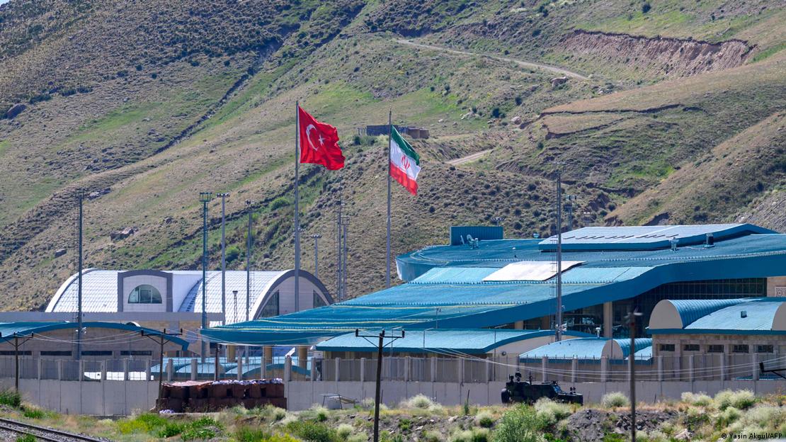 Σημαίες του Ιράν και της Τουρκίας στη συνοριακή διάβαση Razi-Kapiköy
