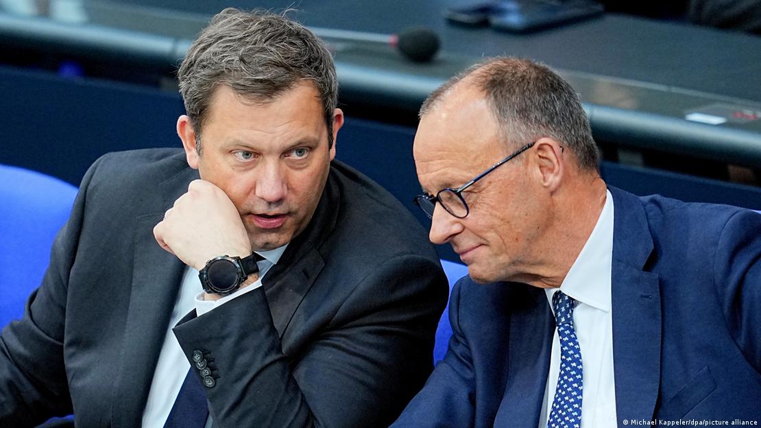 O καγκελάριος Φρίντριχ Μερτς (CDU) με τον αντικαγκελάριο Λαρς Κλίνγκμπαϊλ (SPD) στη βουλή