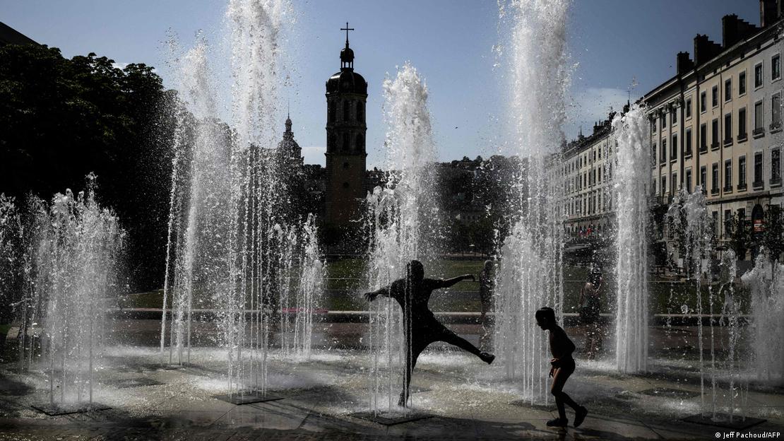 Παιδιά παίζουν με το νερό σε συντριβάνια στη Λυών