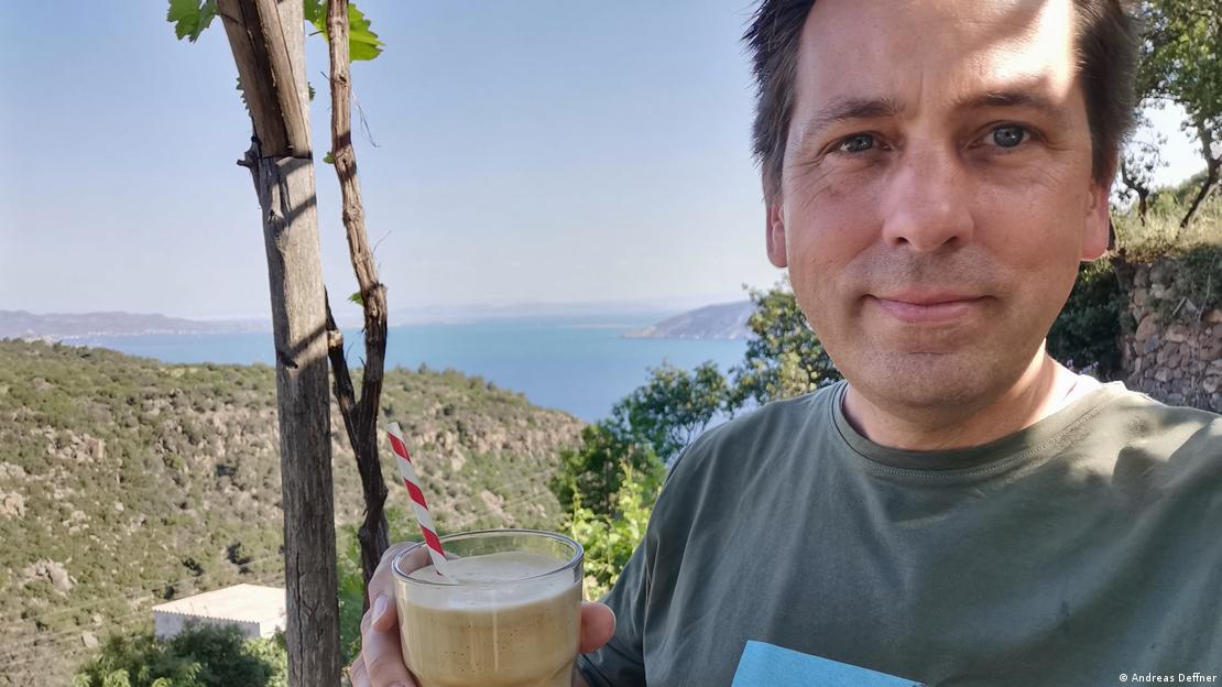 Ο Αντρέας Ντέφνερ με τον αγαπημένο του ελληνικό φραπέ