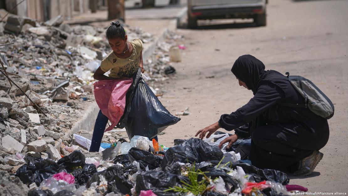 Ψάχνοντας τρόφιμα στα σκουπίδια. Φωτογραφία στο Χαν Γιουνίς στα τέλη Μαΐου«Το σενάριο-εφιάλτης έχει γίνει πραγματικότητα» τονίζει ο Τζέρεμι Λόρενς, εκπρόσωπος του Γραφείου Ανθρωπίνων δικαιωμάτων του ΟΗΕ. Από την πλευρά του ο Φόλκερ Τουρκ, Ύπατος Αρμοστής των Ηνωμένων Εθνών για τα Ανθρώπινα Δικαιώματα, προειδοποιεί: «Είναι έγκλημα πολέμου να επιλέγεται η λιμοκτονία ως όπλο». Πιο αναλυτικά, ο Τουρκ εκτιμά ότι «το Ισραήλ έχει καταστρέψει σημαντικές υποδομές και όλες τις καλλιεργήσιμες εκτάσεις, έχει απαγορεύσει το ψάρεμα, έχει εκτοπίσει τον πληθυσμό».
