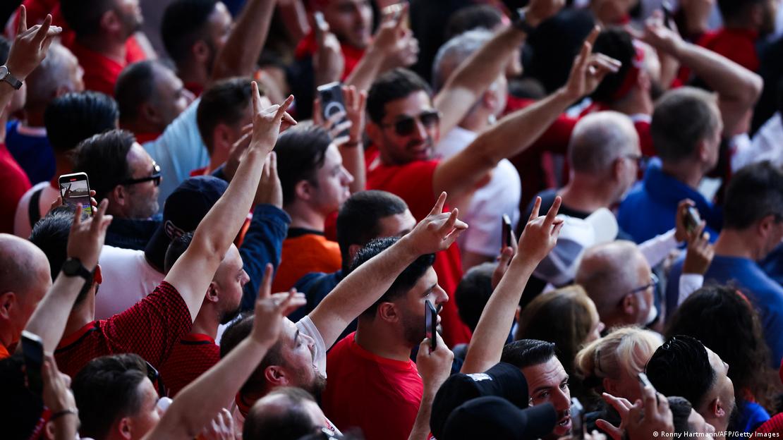 Νεαροί οπαδοί στο EURO 2024 κάνουν το σήμα των Γκρίζων Λύκων