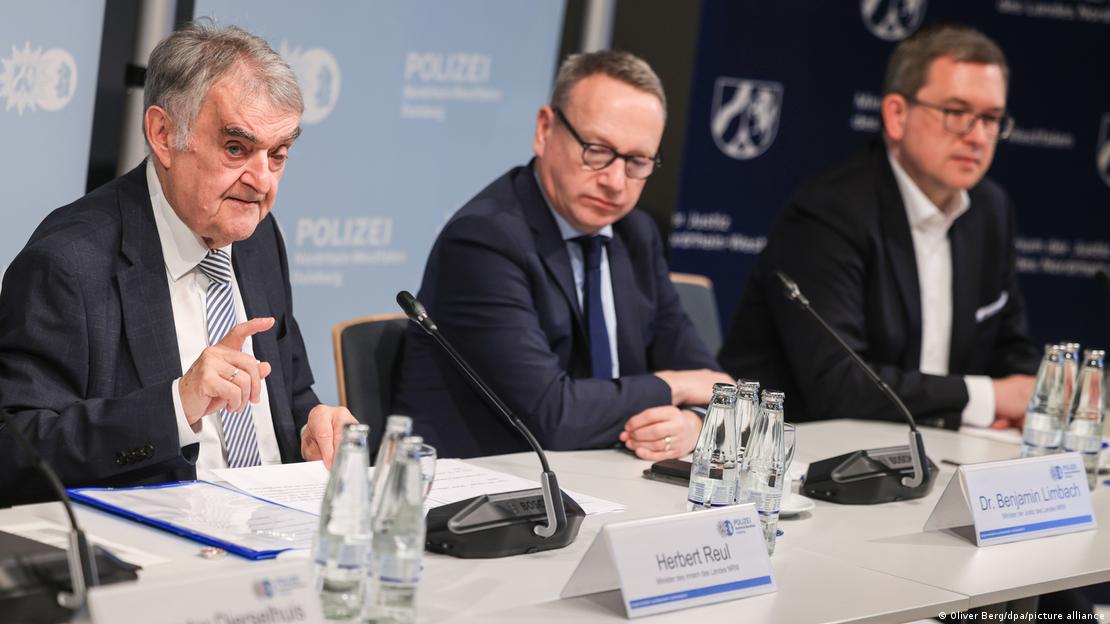 Ο υπ. Εσωτερικών της Βόρειας Ρηνανίας-Βεστφαλίας Χέρμπερτ Ρόιλ (αρ.) σε συνέντευξη Τύπου