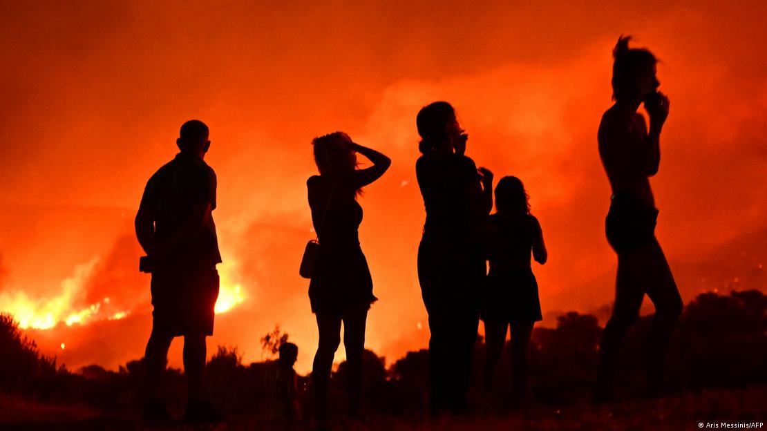 Kάτοικοι της Παλαιάς Φώκαιας - απελπισμένοι μπροστά στις πυρκαγιέςΟι πυρκαγιές στην Ελλάδα και ευρύτερα στις χώρες της Μεσογείου απασχολούν ιδιαίτερα και σήμερα τον γερμανικό Τύπο. «Ο ευρωπαϊκός Νότος εξακολουθεί να βρίσκεται αντιμέτωπος με αμέτρητες δασικές πυρκαγιές. Στην Ελλάδα, οι πυρκαγιές συνεχίζουν να εξαπλώνονται (...) Η ξηρασία και οι ισχυροί άνεμοι δυσχεραίνουν τις εργασίες κατάσβεσης. Περισσότεροι από 4.800 πυροσβέστες βρίσκονται σε επιφυλακή», αναφέρει η Zeit στην ιστοσελίδα της. «Στην Ισπανία, οι δασικές πυρκαγιές στοίχισαν ήδη τη ζωή σε δύο άτομα. (...) Πυρκαγιές μαίνονται επίσης στην Πορτογαλία, την Ιταλία, το Μαυροβούνιο και την Αλβανία. Οι αρχές στο Μαυροβούνιο και την Αλβανία ανέφεραν επίσης από έναν νεκρό. Οι επιστήμονες προειδοποιούν ότι η συχνότητα και η ένταση των ακραίων καιρικών φαινομένων, όπως καύσωνες, ξηρασίες και πλημμύρες, θα συνεχίσουν να αυξάνονται λόγω της κλιματικής αλλαγής».