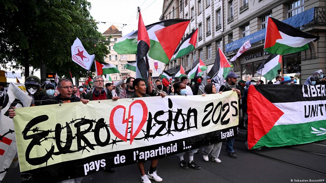 Διαδηλωτές υπέρ της Παλαιστίνης στην Βασιλεία, κατά την φετινή EurovisionΟ ολλανδικός δημόσιος ραδιοτηλεοπτικός φορέας AVROTROS δήλωσε επίσης ότι δεν μπορεί «να δικαιολογήσει πλέον τη συμμετοχή του Ισραήλ, δεδομένης της συνεχιζόμενης ανθρωπιστικής καταστροφής στη Γάζα».