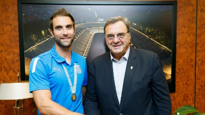 Ο παγκόσμιος πρωταθλητής Στέφανος Ντούσκος δέχθηκε τα συγχαρητήρια του Ισίδωρου Κούβελου