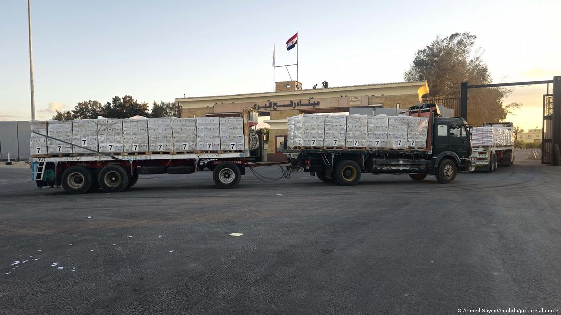 Φορτηγά με ανθρωπιστική βοήθεια μπροστά από το φυλάκιο της ΡάφαΟι Ισραηλινοί ήδη απειλούν με αντίποινα, κατηγορώντας τη Χαμάς ότι εφαρμόζει παρελκυστικές τακτικές προκειμένου να προλάβει να μονιμοποιήσει τον στρατιωτικό της έλεγχο επί του πεδίου. Ενώ Αίγυπτος, Κατάρ και Τουρκία πιέζουν τη Χαμάς να παραδώσει όλους του νεκρούς ομήρους το συντομότερο, το Ισραήλ εν τέλει αρνήθηκε να ανοίξει σήμερα το φυλάκιο της Ράφα, εμποδίζοντας έτσι τη διέλευση 600 οχημάτων με ανθρωπιστική βοήθεια για τους αμάχους.