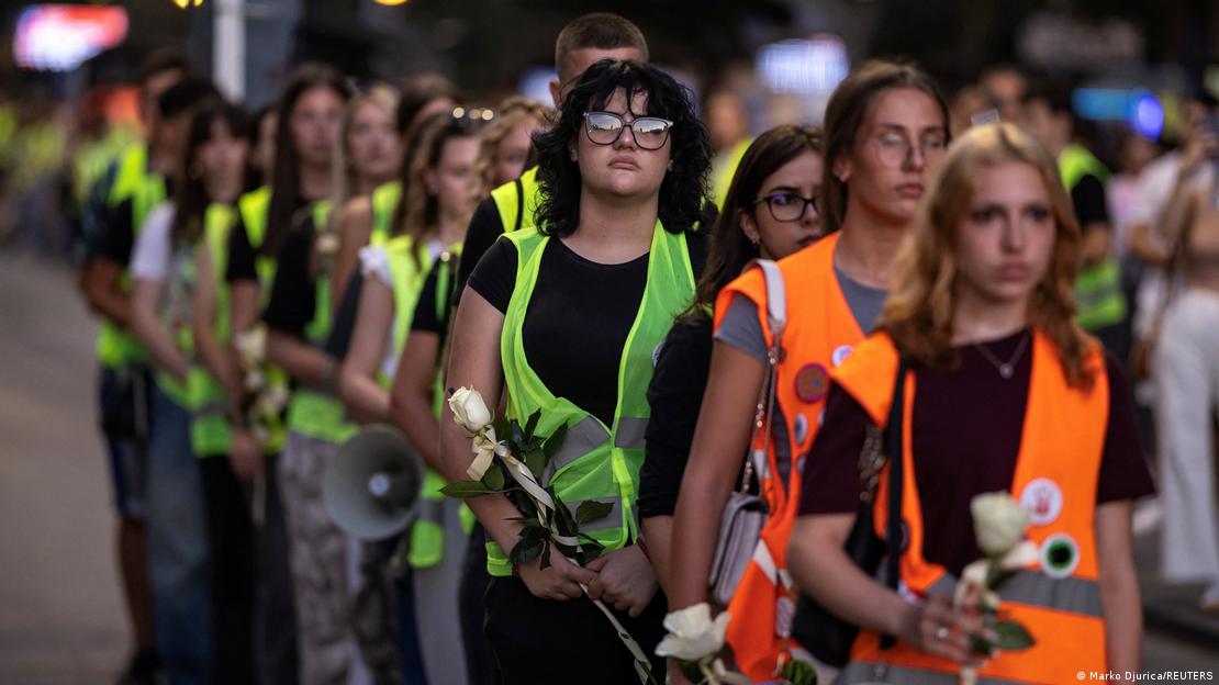 Φοιτητές εναποθέτουν μερικά λουλούδια στη μνήμη των θυμάτων«Η νίκη μας έγκειται στο γεγονός ότι οι άνθρωποι συνειδητοποιούν πως κάτι δεν δουλεύει σε αυτή τη χώρα και πως χρειαζόμαστε μία δίκαιη κοινωνία, με θεσμούς που πραγματικά λειτουργούν», λέει σήμερα ο Μπόρις Κοτζίνοβιτς στην Deutsche Welle. Με σύνθημα «Έχετε αίμα στα χέρια σας» και με σύμβολο την κόκκινη παλάμη (αποτύπωμα της παλάμης με κόκκινη μπογιά που εμφανίζεται σε online αναρτήσεις, σε πλακάτ, αλλά και στους δρόμους), το φοιτητικό κίνημα επεκτείνεται πολύ πέρα από το Νόβι Σαντ, τη δεύτερη μεγαλύτερη πόλη της Σερβίας.