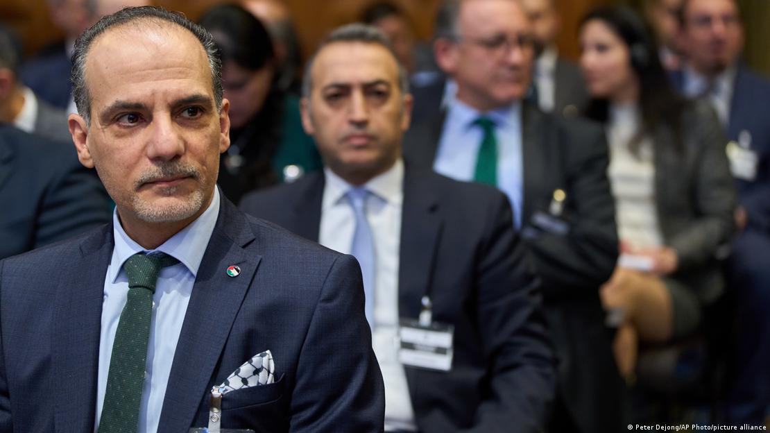 Η παλαιστινιακή αντιπροσωπεία στην αίθουσα του Δικαστηρίου