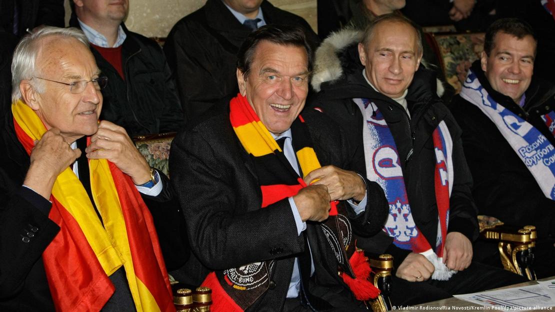 Γκέρχαρντ Σρέντερ και Βλάντιμιρ Πούτιν το 2009 μαζί στο γήπεδοΩστόσο, καθώς οι εντάσεις για την Ουκρανία αυξάνονταν, γεωπολιτικά επιχειρήματα ήρθαν στο προσκήνιο. Ήδη από το 2006, ο Ράντοσλαβ Σικόρσκι, τότε υπουργός Άμυνας, καταδίκασε τον Nord Stream, συγκρίνοντας τον αγωγό της Βαλτικής Θάλασσας με το Σύμφωνο Χίτλερ-Στάλιν του 1939. Έκτοτε, η πολωνική κριτική για το γερμανορωσικό έργο αποτελεί επαναλαμβανόμενο θέμα στις γερμανοπολωνικές συζητήσεις, ανεξάρτητα από το ποιος βρισκόταν στην εξουσία στη Βαρσοβία.