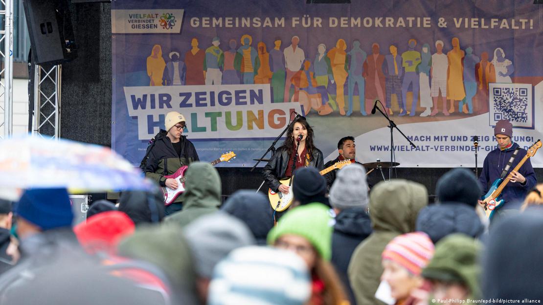 Εκδήλωση με τιτλο «Γιορτή της Δημοκρατίας» έγινε μπροστά στο Δημαρχείο του ΓκίσενΕκτός από τα μπλόκα ειρηνικές συγκεντρώσεις διαμαρτυρίας ξεκίνησαν από νωρίς το πρωί στο Γκίσεν. Στο κέντρο της πόλης, σύμφωνα με την Ομοσπονδία Γερμανικών Συνδικάτων (DGB), 20.000 άτομα συμμετείχαν στην αντι-διαδήλωση κρατώντας πλακάτ με συνθήματα όπως «Είμαστε περισσότεροι», «Είμαστε η κακή σας συνείδηση», «Ενωμένοι ενάντια στον φασισμό» και «Το Γκίσεν στηρίζει ένα πολύχρωμο μέλλον».