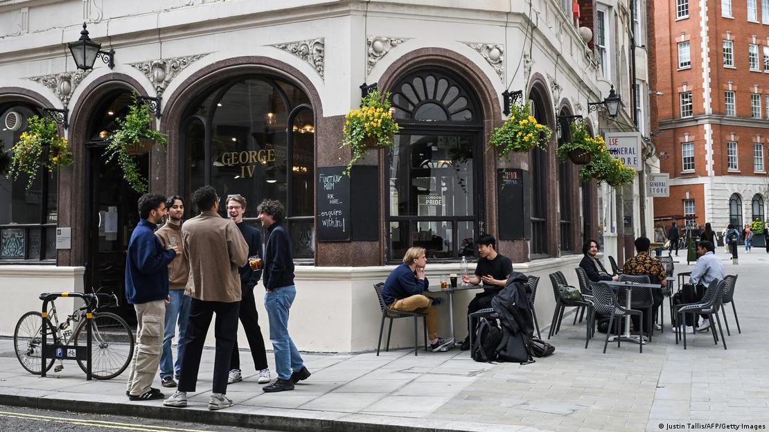 Νεαροί πίνουν έξω από μια παμπ στο Λονδίνο