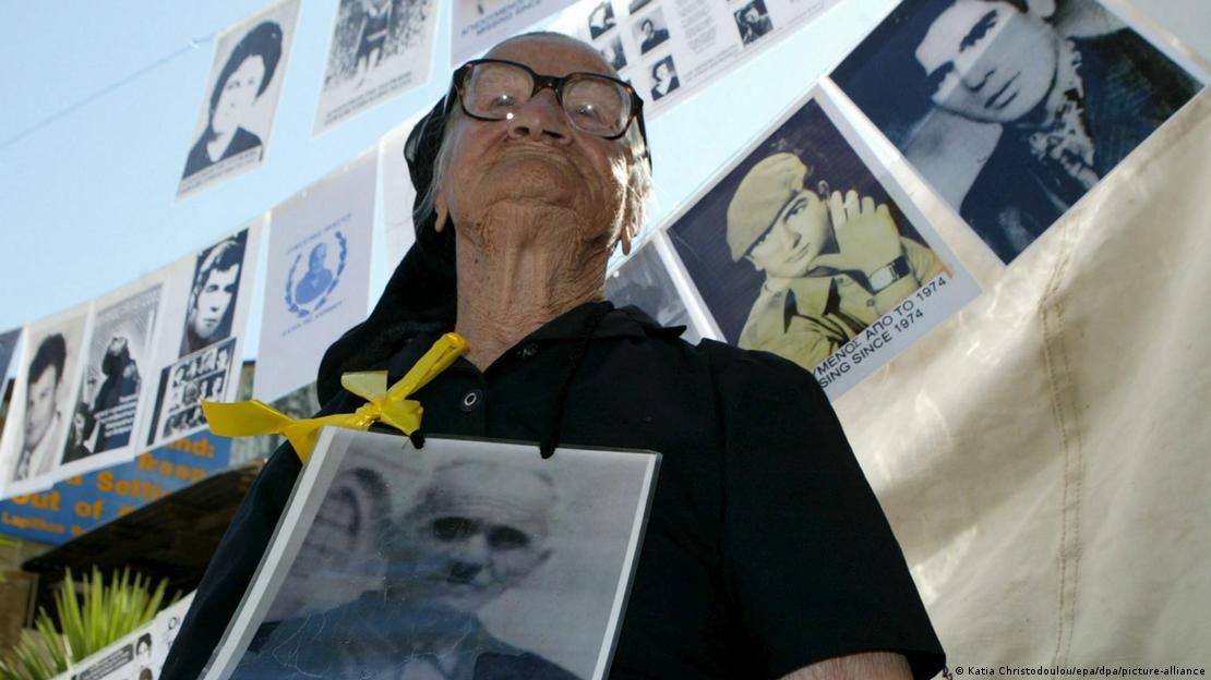 H Χρυσταλλού Χατζηγιάννη με τη φωτογραφία του αγνοούμενου συζύγου της