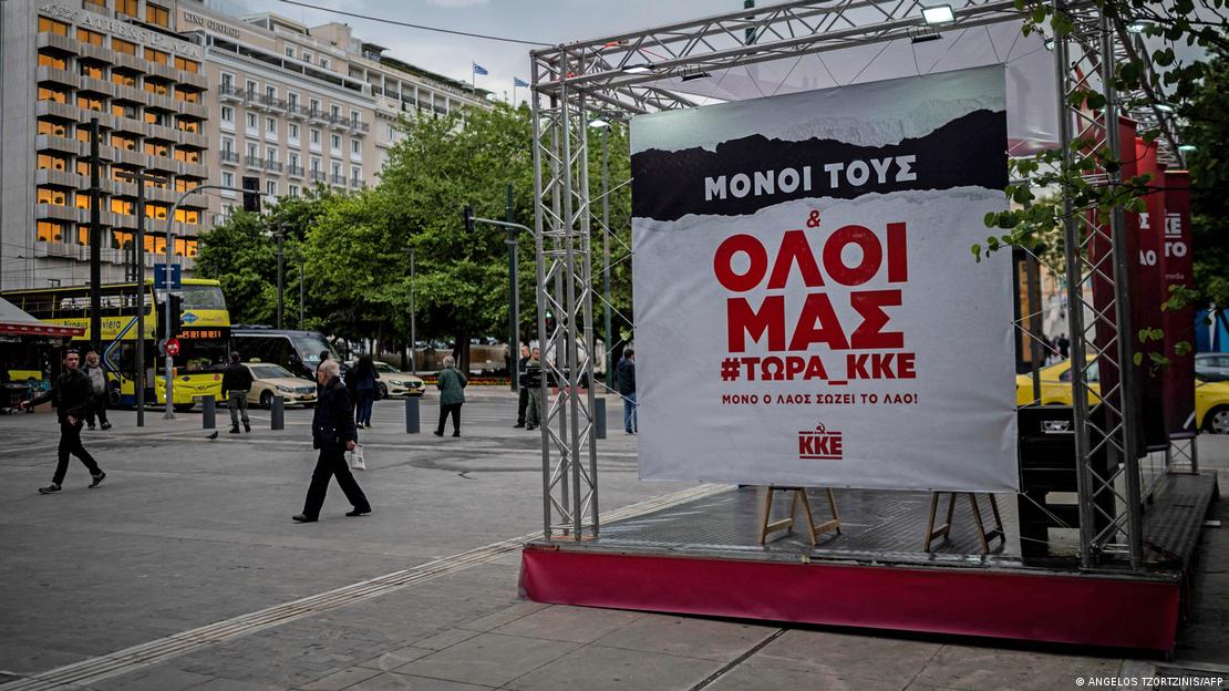 Προεκλογικό περίπτερο του ΚΚΕ στην Αθήνα στις εκλογές του 2023