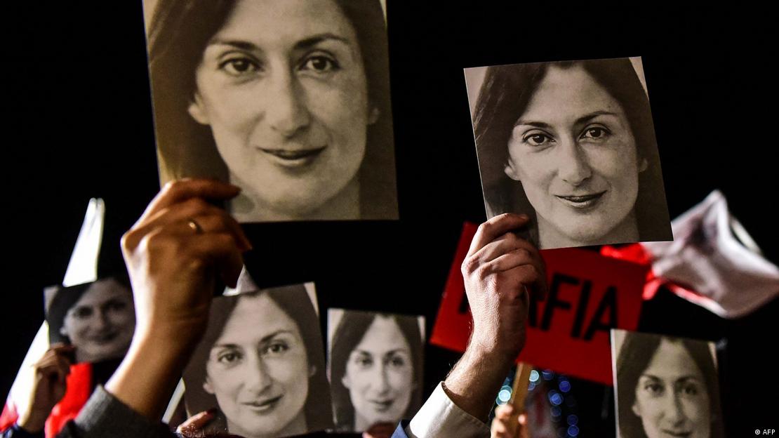Διαδήλωση στη Βαλέτα. Διαδηλωτές κρατούν φωτογραφίες της Μαλτέζας δημοσιογράφου Δάφνης Καρουάνα Γκαλιζία