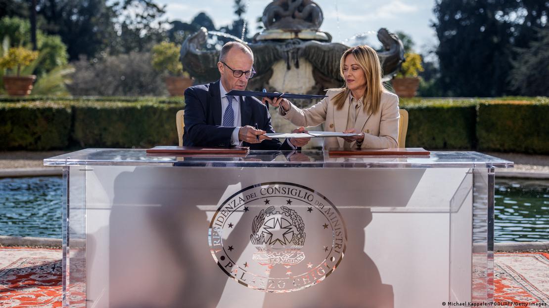 Μερτς και Μελόνι υπέγραψαν διμερή συμφωνία στρατηγικής συνεργασίας την ΠαρασκευήΣε πρότυπο των απανταχού αντισυστημικών έχει αναδειχθεί η πρωθυπουργός της Ιταλίας Τζόρτζια Μελόνι, μέχρι πρότινος επικεφαλής της ομάδας ECR. Επί δέκα χρόνια στην αντιπολίτευση ξιφουλκούσε εναντίον των μεταναστών και των «γραφειοκρατών στις Βρυξέλλες», αλλά πάντοτε επέλεγε να είναι το μετριοπαθές πρόσωπο της ακραίας δεξιάς παράταξης. Δεν ήταν και δύσκολο, με τον φωνακλά Ματέο Σαλβίνι μονίμως δίπλα της.